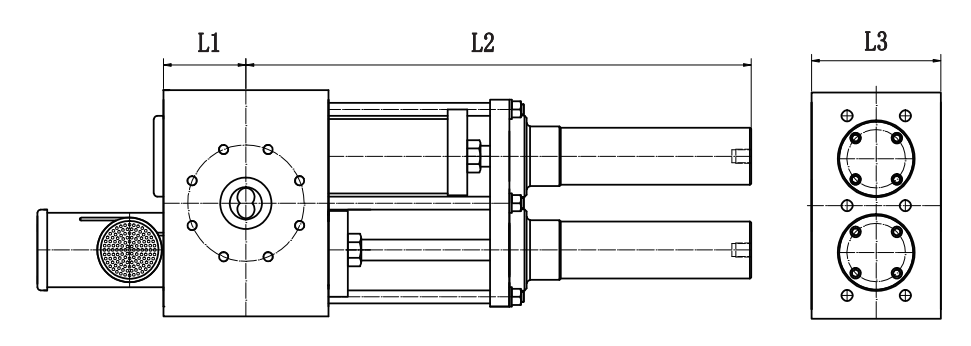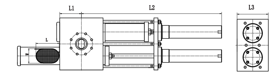 1、雙柱雙工位液壓換網(wǎng)器設計為雙通道雙濾網(wǎng)結構,換網(wǎng)時一網(wǎng)工作,一網(wǎng)更換,不中斷料流,不中斷產(chǎn)品,實現(xiàn)不停機換網(wǎng)。